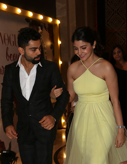 Keeping the gossip-mill on churn we found Virat and Anushka at Dehradun Jolly Grant Airport heading for a New Year destination at Nagendra Nagar. In a black leather pant teamed with pink high neck, she paired her beau in white and black combination.